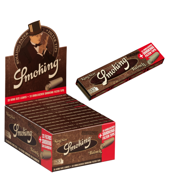 Papel ultrafino de 13 gramos sin blanquear y libre de cloro, de combustión lenta con filigrana Smoking y certificado FSC. ¡INCLUYE 33 FILTROS DE CARTÓN!