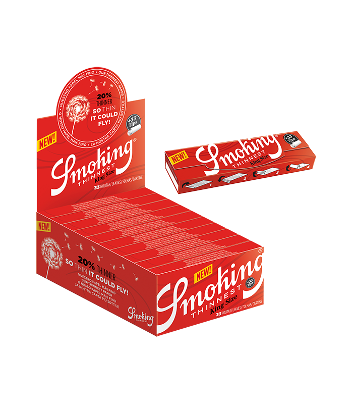 Papel ultrafino de 10 gramos, de combustión lenta con filigrana Smoking y certificado FSC. ¡INCLUYE 33 FILTROS DE CARTÓN!